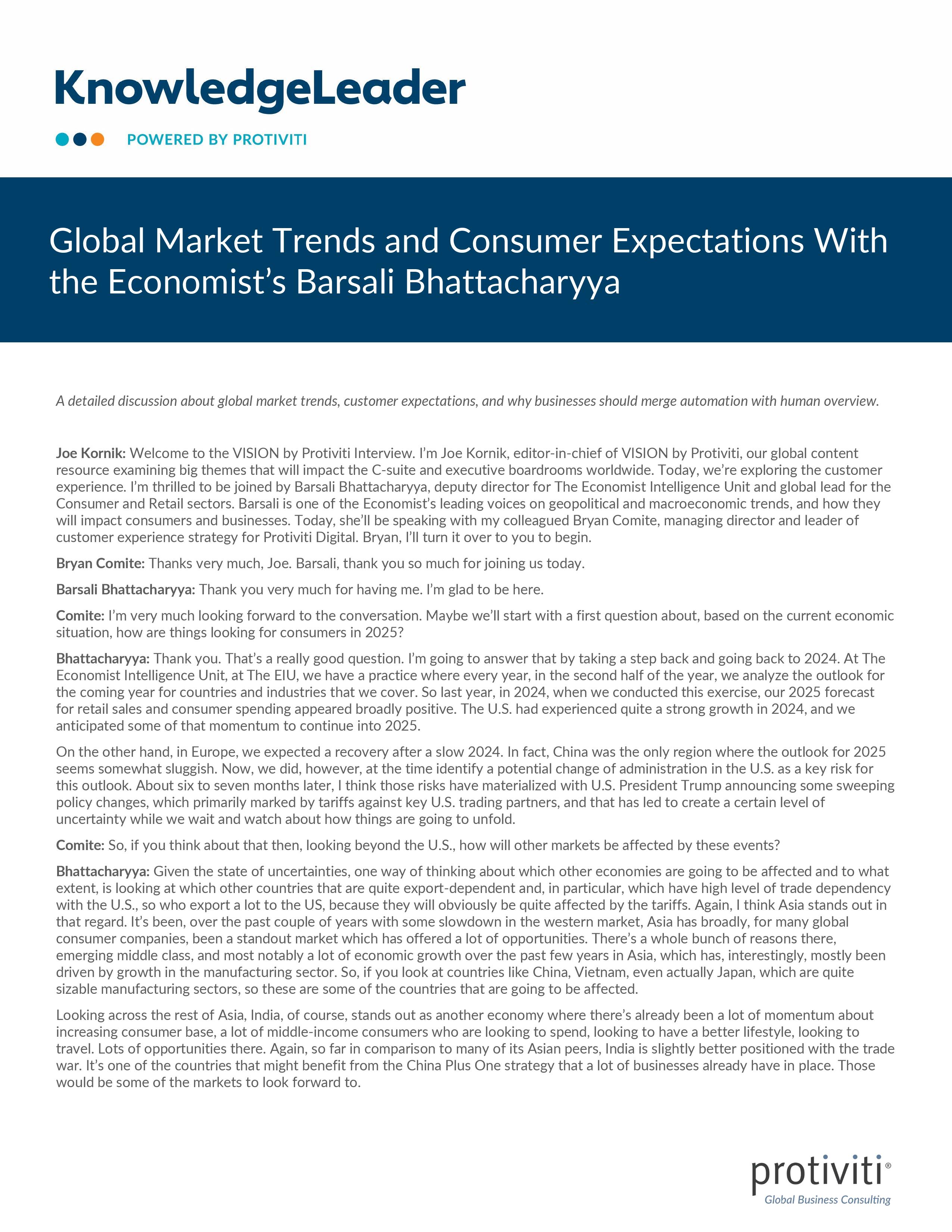 This article dives into global market trends, customer expectations, and why businesses should merge automation with human overview. Barsali Bhattacharyya, deputy director for The Economist Intelligence Unit and global lead for the Consumer and Retail sectors, highlights the mixed economic outlook for 2025, with strong growth in the U.S., recovery in Europe and sluggish prospects in China due to geopolitical uncertainties, such as U.S. tariffs on trading partners. Export-dependent economies like China, Vietnam and Japan are expected to face challenges, while India and the Middle East, particularly Saudi Arabia and the UAE, remain promising markets due to their expanding middle-class consumer base and tourism growth. Consumers, amidst caution, are seeking value and occasional indulgences, driving businesses to differentiate themselves through pricing strategies and value propositions.
