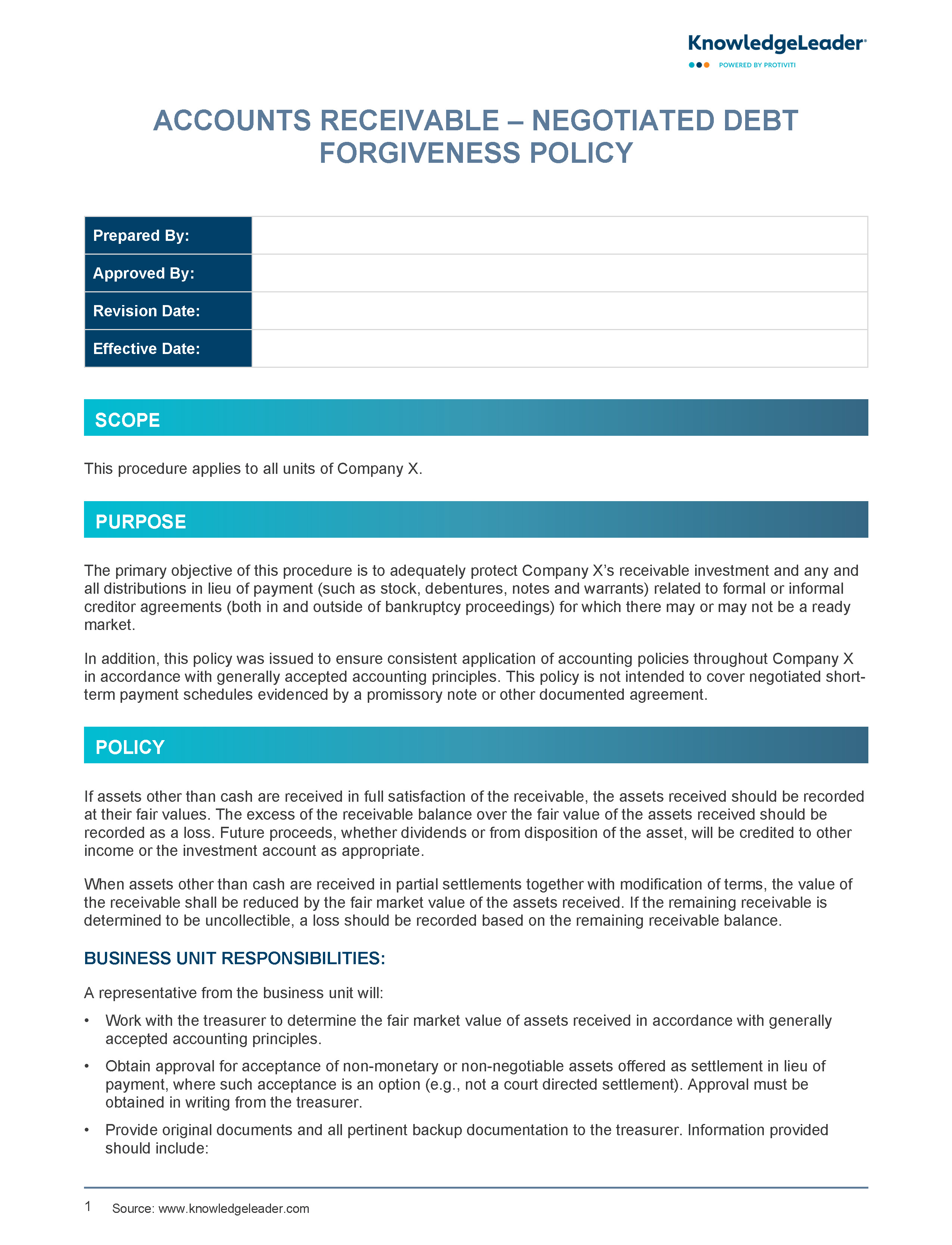 Accounts Receivable Negotiated Debt Forgiveness Policy