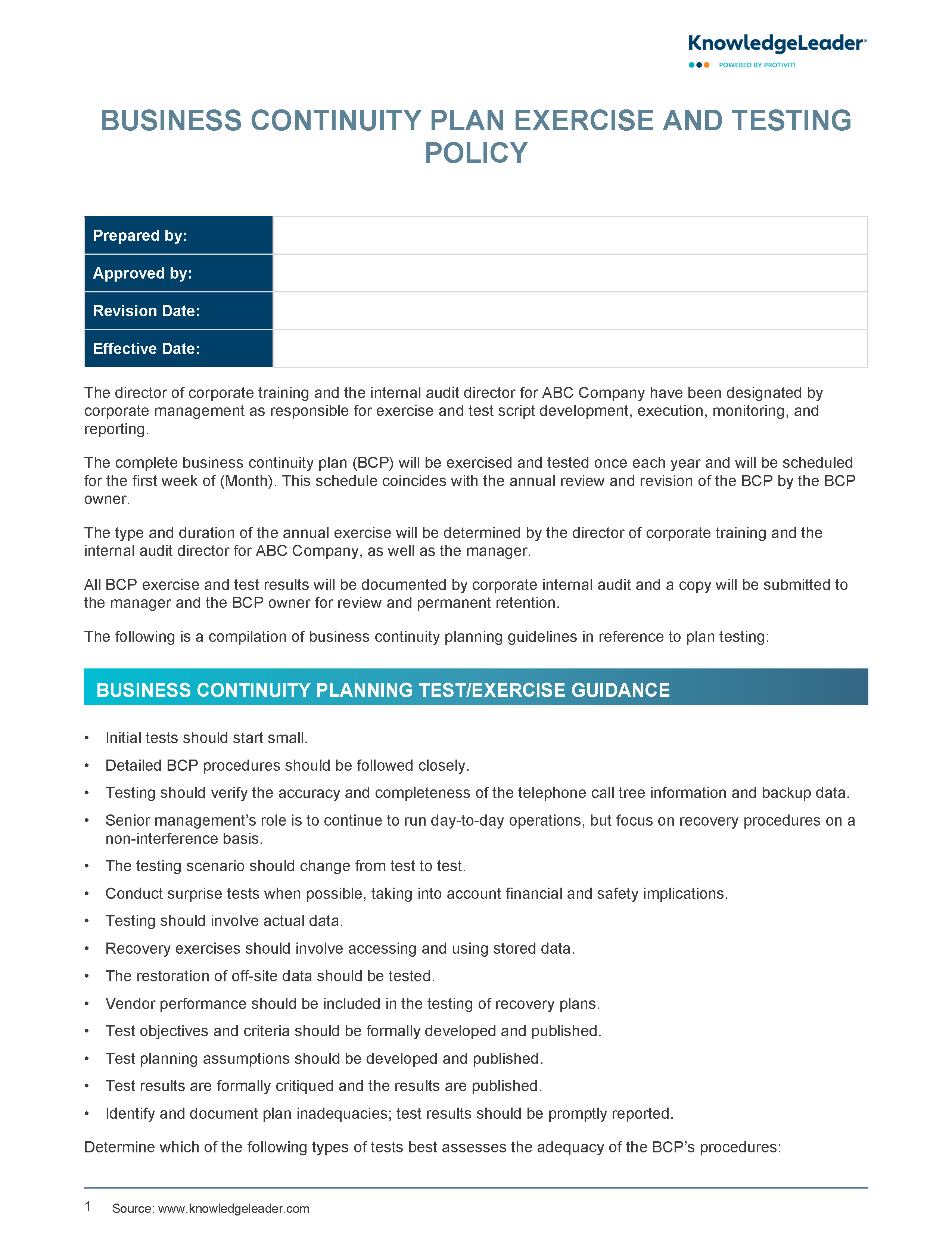 Organizations can use the guidelines included in this policy to test their business continuity plans.