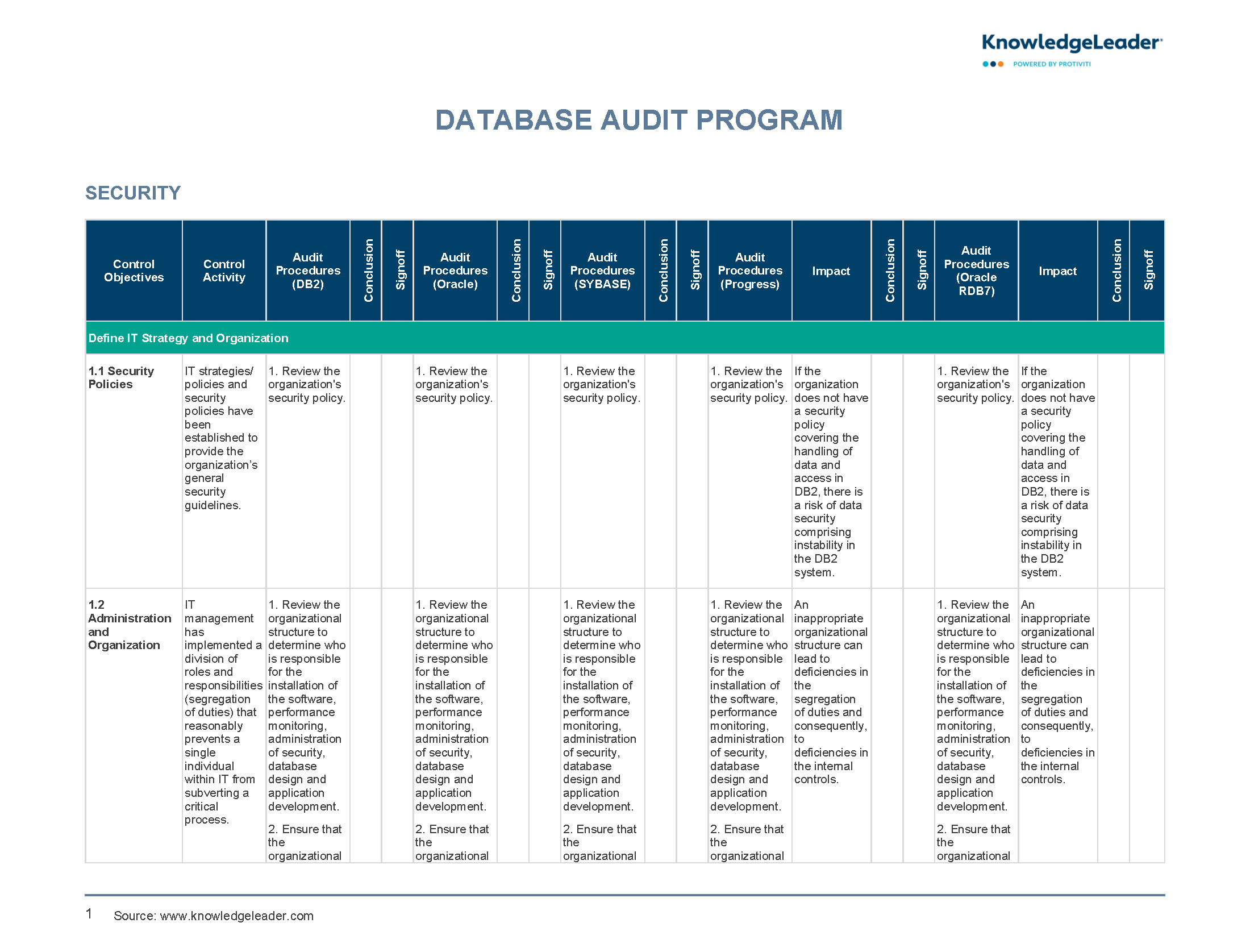 This tool includes two sample audit programs that provide steps organizations can take to perform a database administration review audit.