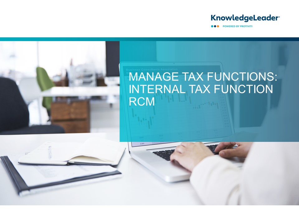 This document outlines risks and controls common to the “internal tax function” aspect of the 5.4 Manage Tax Functions process in a risk control matrix (RCM) format.