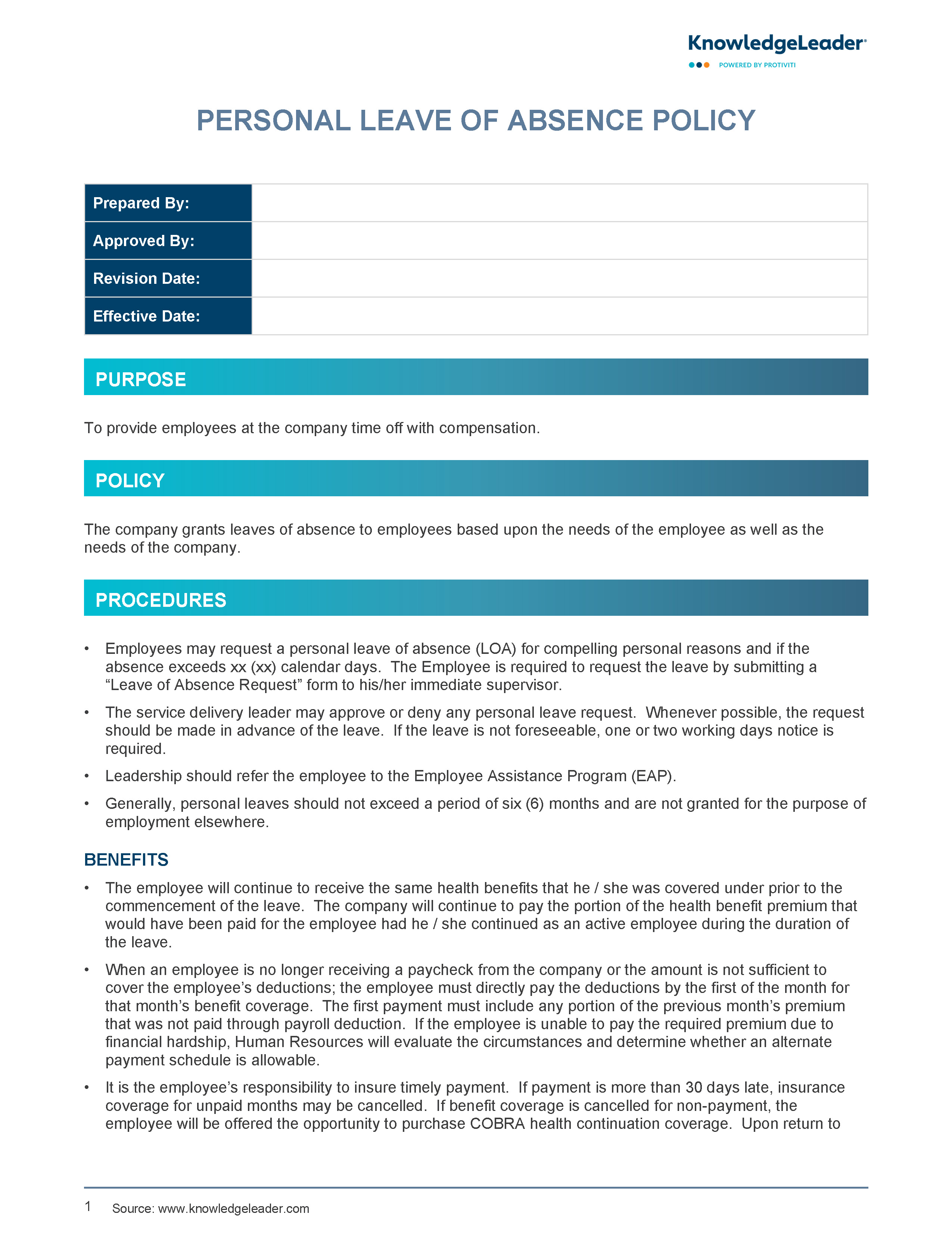 - Comprehensive Coverage: Detailed procedures for both personal and sick leave policies are included.