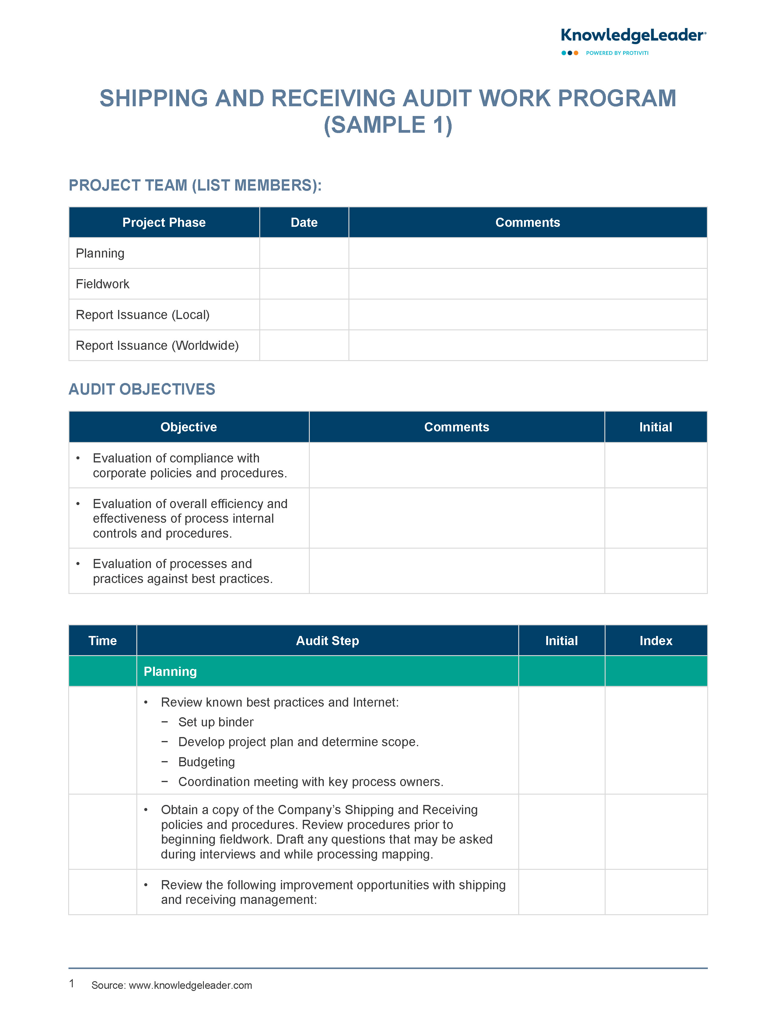 Focus on the importance of identifying shipping and receiving process improvement opportunities with the three sample audit work programs in this document.